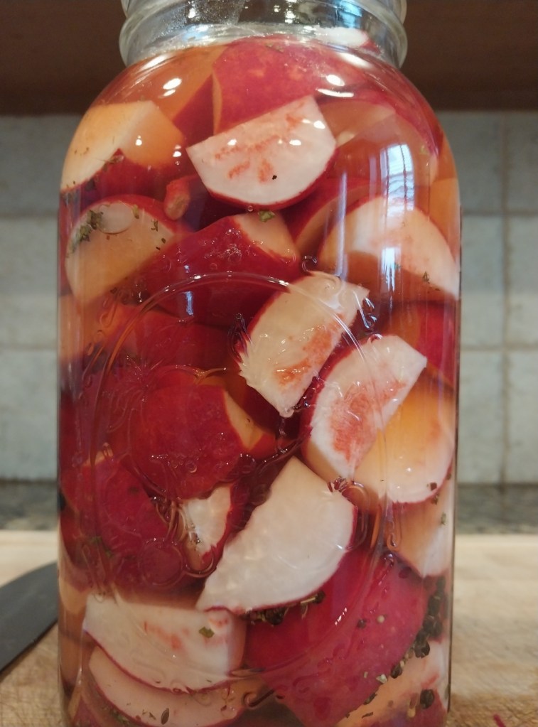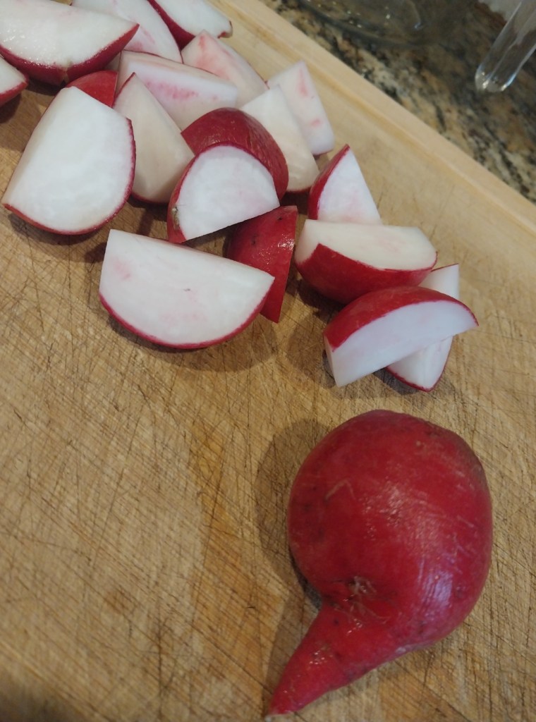 Radishes are misunderstood creatures. Perhaps you did not like them as a child and never gave them another chance. The natural bitterness present in radishes is offputting to the young palate but with age, and fewer taste buds, the subtle bitterness becomes pleasant.
