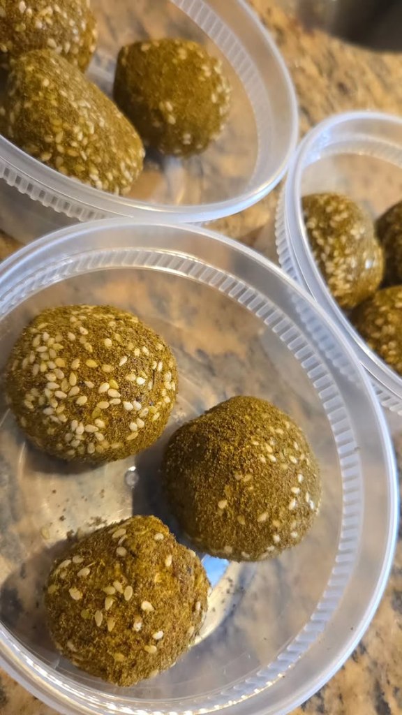 - Scoop off about two tablespoons of the labneh and roll into a ball.