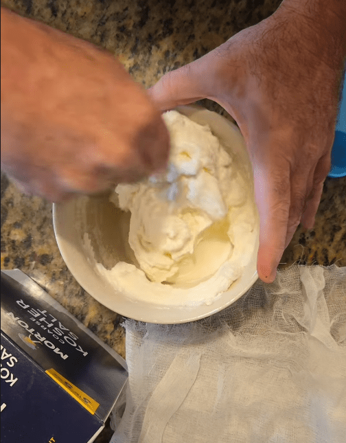 - 24 hours later, remove from cheesecloth and at that point it’s ready. For our purposes, we are making marinated labneh balls, so on to step 6.