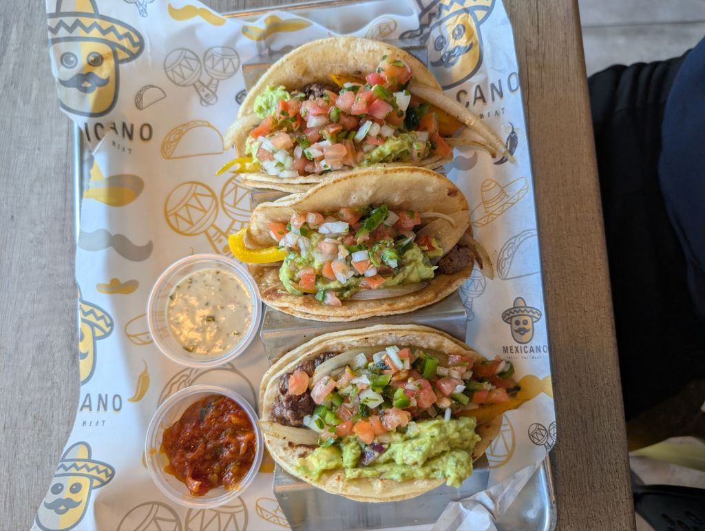 Now that I’m in Houston, I’ve been having the opportunity to go back to some of the restaurants we visited when we were on vacation here last year. But time hasn’t stood still, and there’s a new restaurant in town: Mexicano (9804 Hillcroft St, Houston, TX 77096; phone N/A; mexicanorestaurant.com; under Houston Kashruth Association (HKA) supervision; meat). You’ll remember Mexicano from a recent article I wrote about them. Well, they’re in soft opening mode now, and my kids and I had the pleasure of dining there.