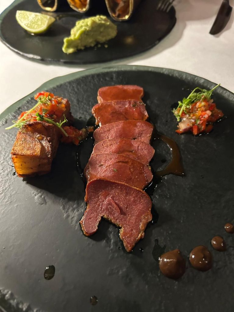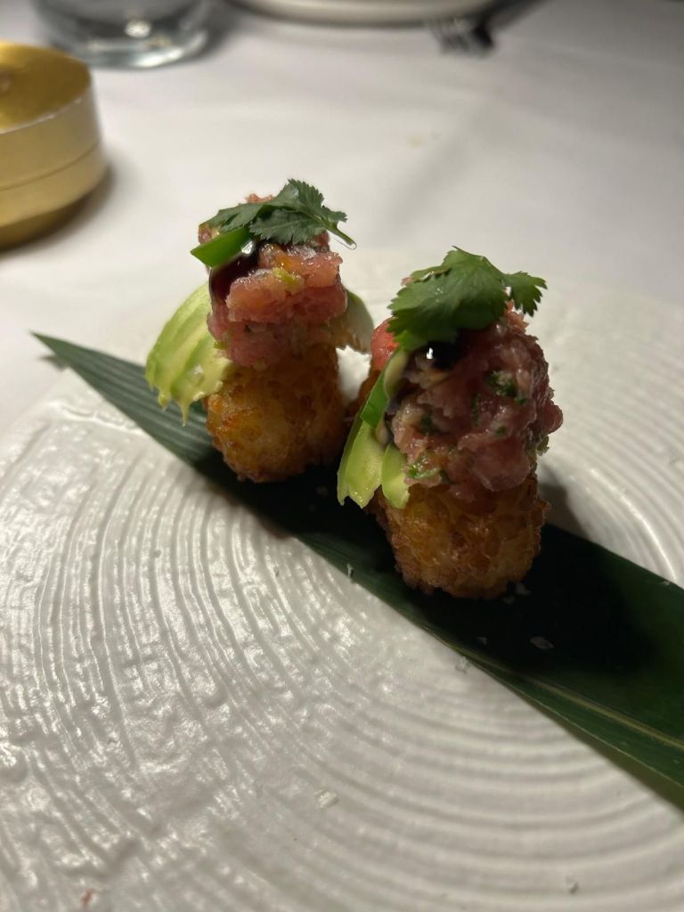 We went next door to dinner at Bordeaux Wine & Steak House, (732) 813-3336, 8 America Ave., Lakewood, NJ 08701, under supervision of Tartikov Kosher. Wow, what an experience. We all agreed that the service was impeccable, so much so that we called the manager over to tell him how pleased we were. The food choices were different than other fancy meat places we had been to, and we enjoyed items such as Smoked Beef Tongue, Duck Confit Gnocchi, and Tuna Crispy Rice. One of our favorite parts was watching a steak get rolled out on a cart and sliced tableside. As we were near the kitchen, it happened often.