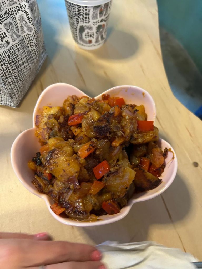 As we had to plan our time wisely for a one-day trip, we set our afternoon snack at Milk Crate, 732-654-6455, 1600 NJ-70, Lakewood, NJ 08701, under supervision of Tartikov Kosher, so we could be close to Bingo Wholesale, our next shopping spot. We arrived at Milk Crate about 40 minutes before closing time, which enabled us to take advantage of a buy one, get one free deal on baked goods. In addition to the delicious baked goods, we tried Lavender Lemonade and The Rabbi’s Potatoes. The cheese Danish was one of the best I’ve ever had. There was ample seating, including an area with a circular bench with wicker cushions to sit on. We loved the funky, uniquely decorated bathrooms and the hip wall art. Just looking around was an experience.
