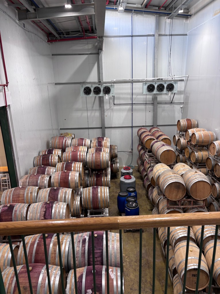 The visitor center features a new, spacious tasting room, with the view from upstairs overlooking the barrel hall. The building was completed just last year, so everything feels fresh, thoughtful, and well designed.